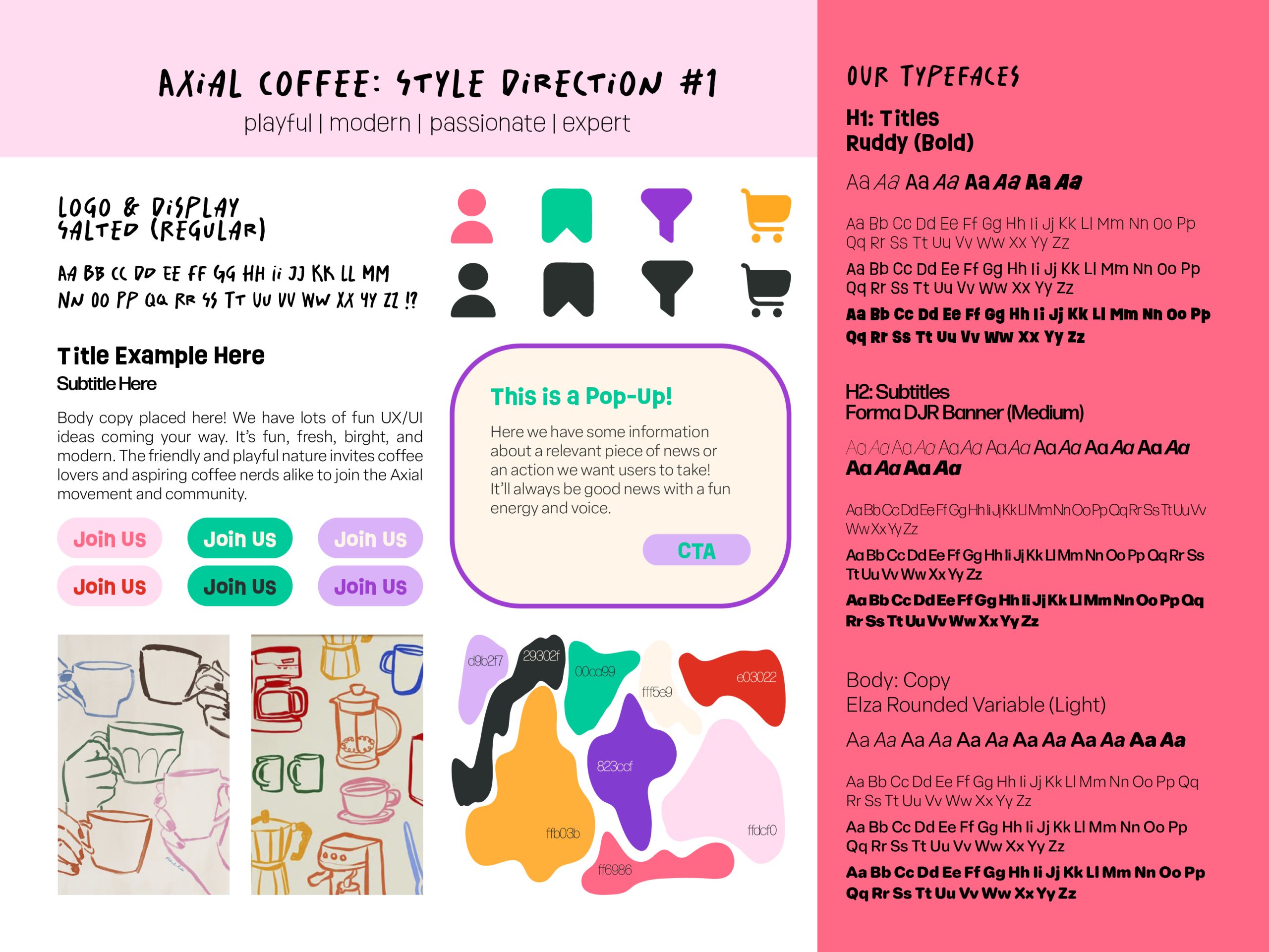 Influenced by our extensive research, the main features we wanted to include in Axial Coffee were detailed coffee bean profiles, subscription options, sample size products, community building through classes and workshops, and reliable speefy shipping and delivery services.
